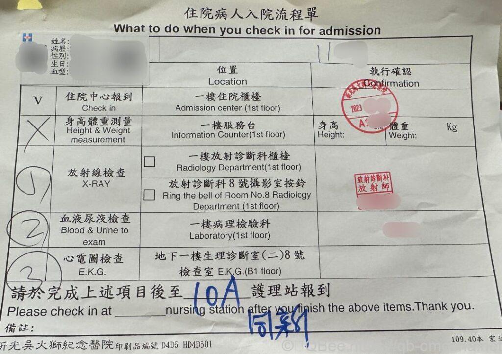 住院當天早上收到電話通知後就可以準備出發前往醫院。