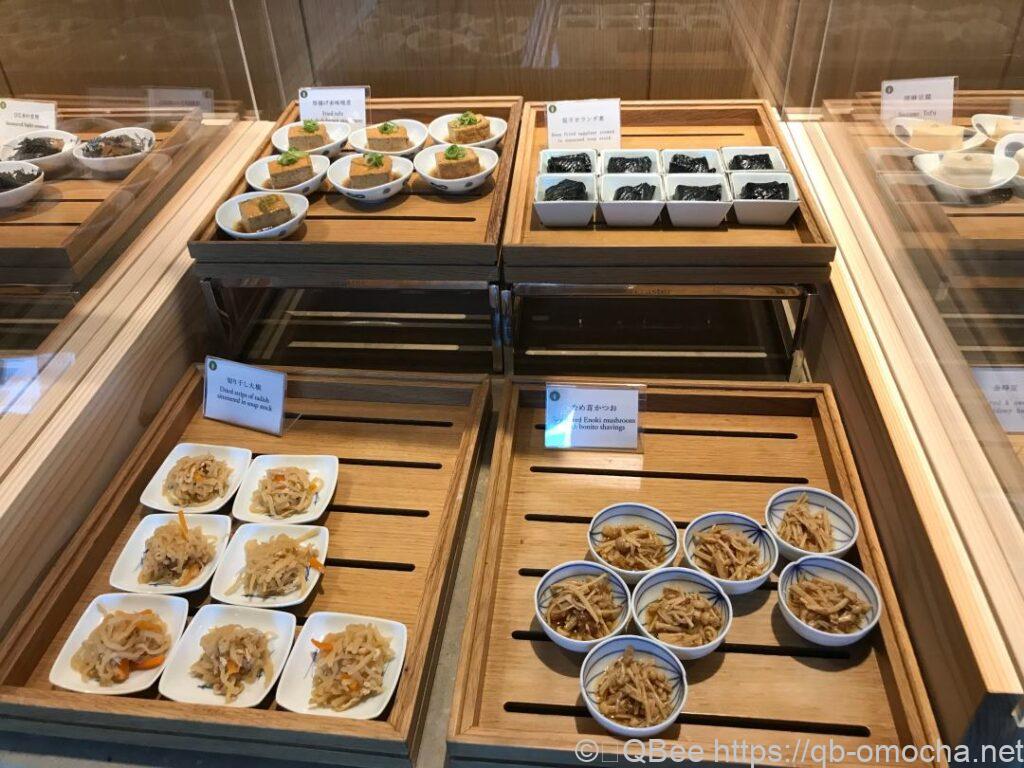 除了基本的西式早餐,如:麵包、熱狗、火腿、生菜等等之外,大部分都是傳統精緻的日式早餐。呈現的方式是放在小碟子裡,想吃多少就拿多少,不用跟別人共享,乾淨衛生。